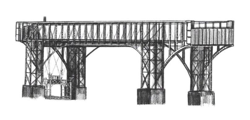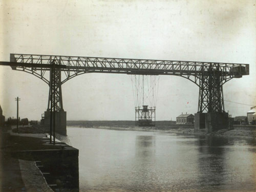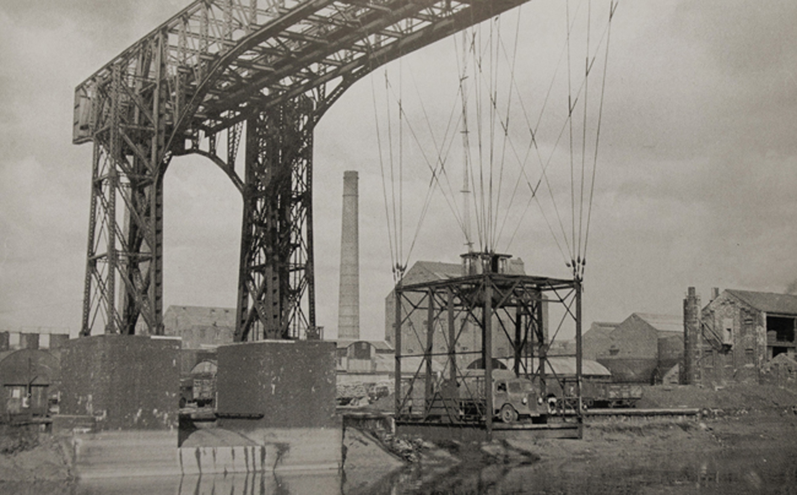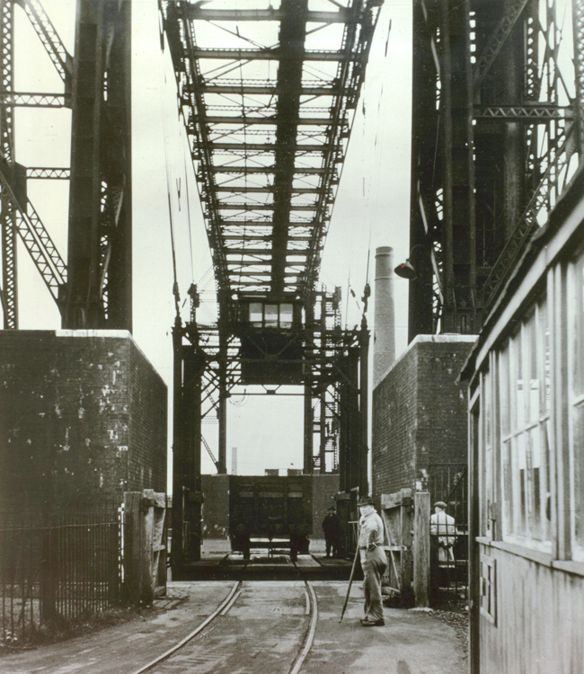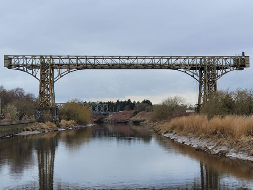 Warrington Transporter Bridge (also known as Bank Quay Transporter Bridge or Crosfield's Transporter Bridge) across the River Mersey is a structural steel transporter bridge with a span of 200 feet (61 metres). It is 30 feet wide (9 metres), and 76 feet (23metres) above high water level, with an overall length of 339 feet (103 metres). It was commissioned in 1916 and, although it has been out of use since about 1964, it is still standing. It was designed by William Henry Hunter and built by William Arrol and Co.